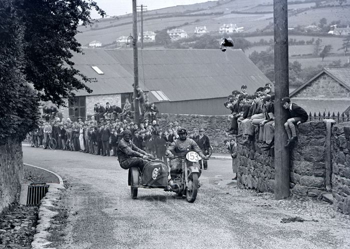 ![Photo - Chat near the check George Wilson with the Triumph [HUE 258], Fred Anning on the left and Frank Jarman ISDT 1950 (Speedtracktales Archive)](https://speedtracktales.com/wp-content/uploads/2012/04/motorcycle19501005-1-isdt1950.png?w=529&h=510)