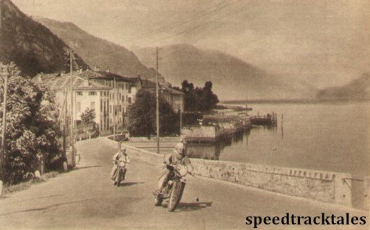 Photo – A fine scene by Lake Como; the leading competitor is A Montanari (Guzzi) ISDT 1951 (speedtracktales archive)