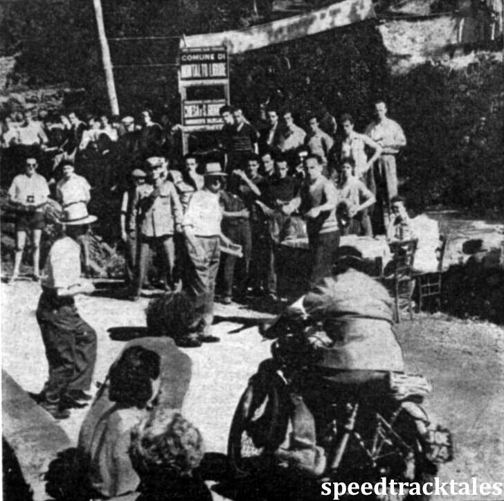 photo – A general scene typical of the Ligurian Alps. Villagers come from near and far to watch the competitors in this trial of trials. ISDT 1948 (Speedtracktales Collection)