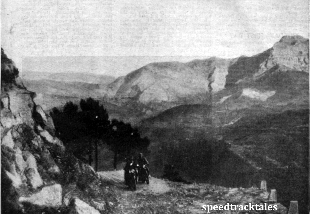 photo – The coast route in the Riviera di Fiori passes through scenes of breathtaking beauty. But H.R. Taylor (998 Vincent-HRD sc) and his passenger have little opportunity to appreciate it. ISDT 1948 (Speedtracktales Collection)