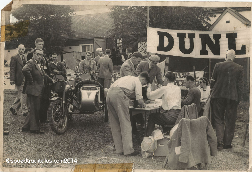 Photo – #50 WT Howard on the works entered BSA 350cc Sidecar outfit at time check ISDT 1954 – (speedtracktales collection)