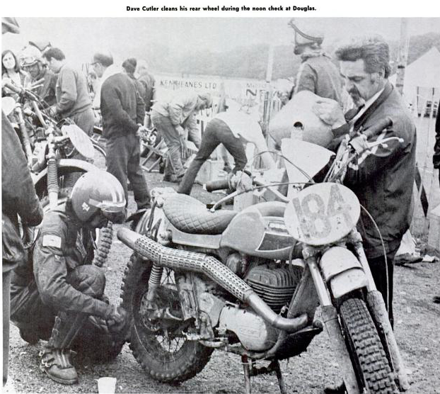 image – #184 Dave Cutler Ossa, of the USA cleans his rear wheel during the noon check at Douglas ISDT 1971