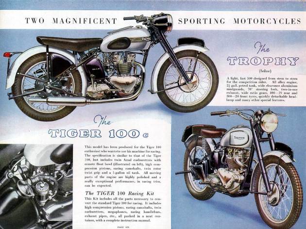 The Triumph Trophy was Triumph’s bold statement of 1949 introduced as a classic dual purpose motorcyle that was capable of being a serious off road racing contender at that time.