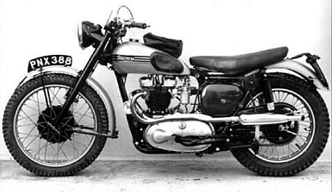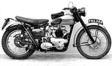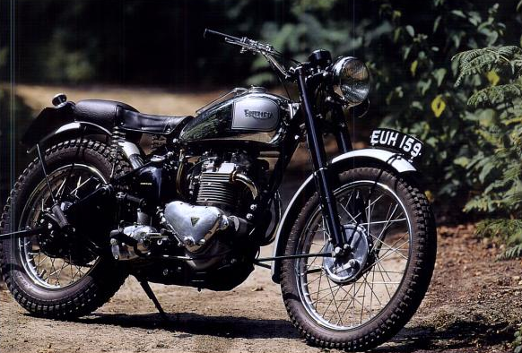 Photo from Triumph archives of the Jim Alves Triumph Trophy Twin 650 that took him to the SIver Vase team win in the ISDT 1954