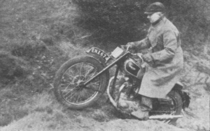 The war started and that was all the competition riding until the Home Guard days. These afforded a trial at Stroud, another at Cheltenham and a couple of scrambles. It was at one of these latter-be won both! – that he met Mr Jack Welton, of Triumphs . Mr. Welton was already thinking that Mr. Alves looked a very likely rider for after the war. . . Alves has not told me this , but one of those who made the remarks quoted at the outset was Mr. A. J. Welton. ‘Our industry – certain member of it – is not slow when it comes to talent-spotting.
