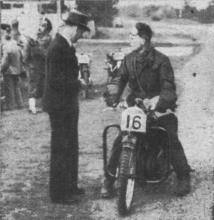 Photo – Jim Alves (on the right) being interviewed by the journalist ‘Torrens’ of ‘the Motor Cycle’