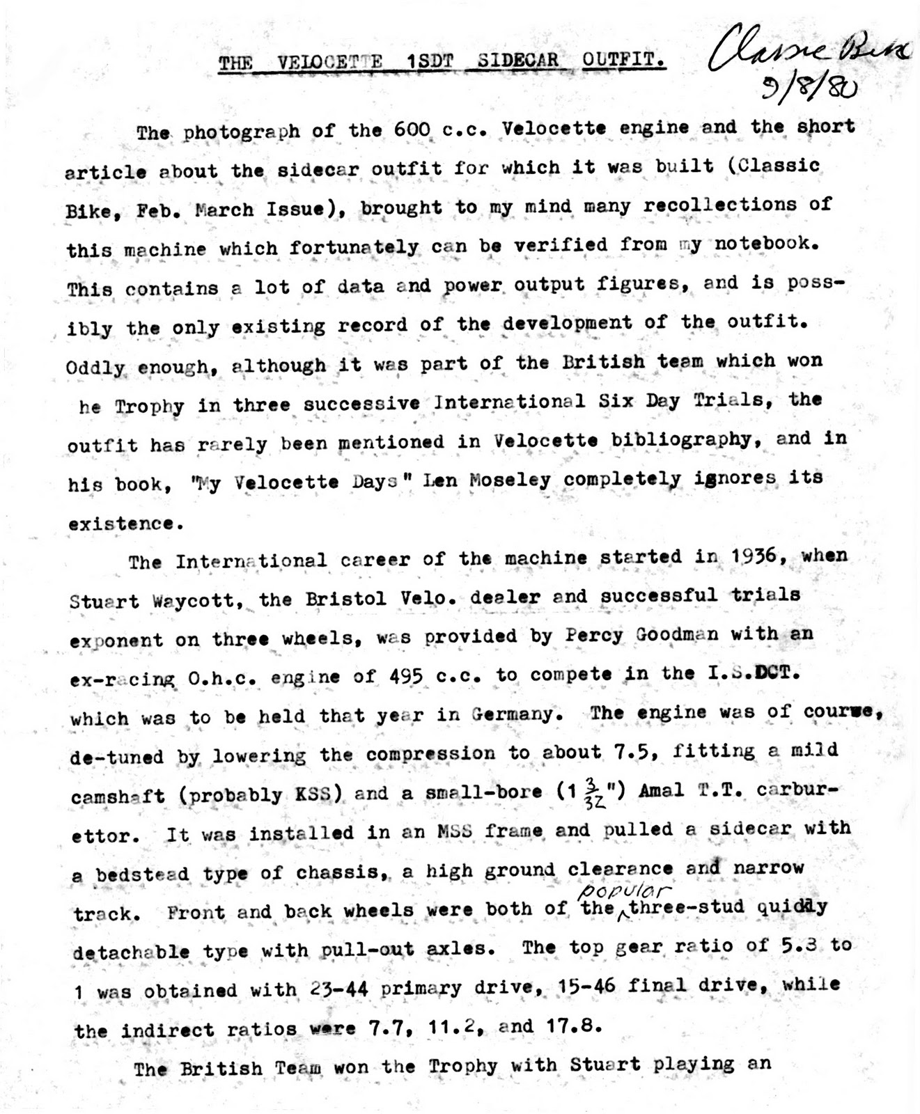 via The Velobanjogent: The Stuart Waycott 600 Velocette ISDT Outfit..