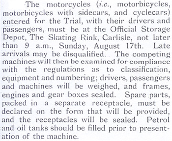 Here, from the FIM web site article, are a few extracts of what were the first sporting rules in the FIM history, which received some amendments during the meeting held on 25 October 1913 at the Automobile Club de France in Paris.