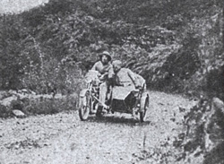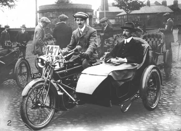 Photo of Charles Collier (left) was the founder of the Matchless factory with his brother Harry. He was a member of the British team who took part in the 1913 Six Days driving a 964cc twin-cylinder Matchless with sidecar. (Image courtesy FIM)