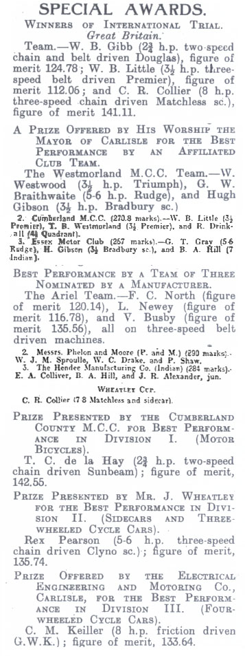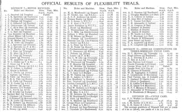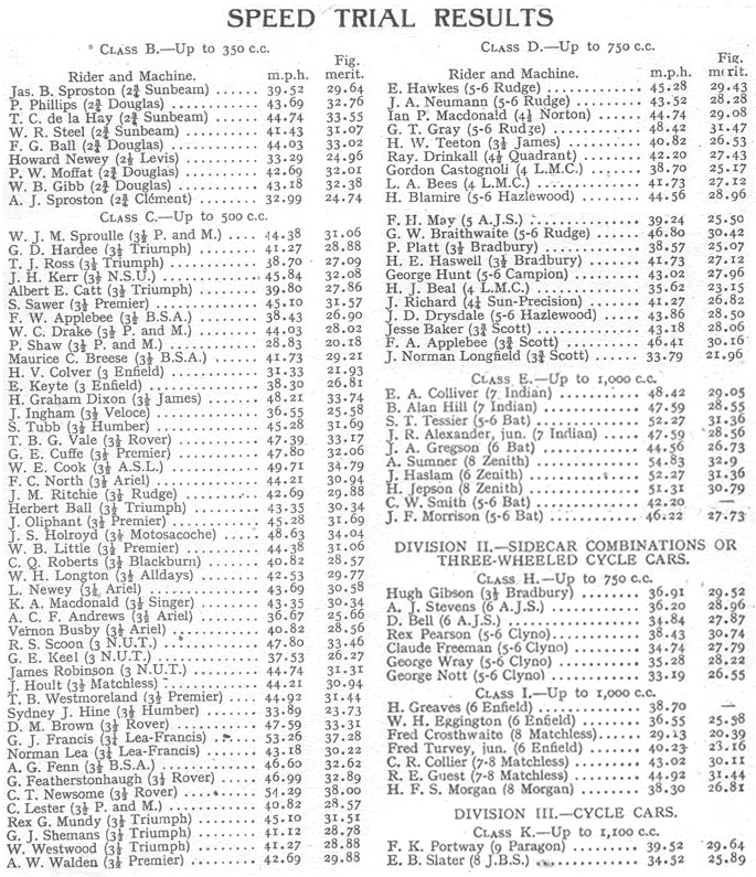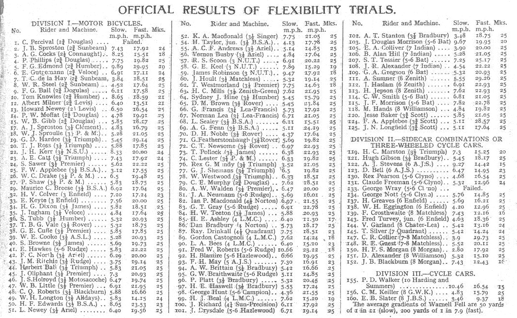 The other ACU Stewards were Rev E P Greenhill, the Chairman of the ACU’s Competition Committee and G Stanley Carter the Vice Chairman of the Competitions Committee