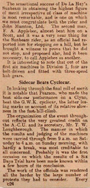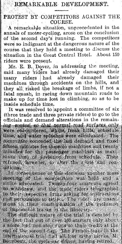 Images of Scanned article indicating the severity of ground conditions which ultimately led to a riders revolt at the end of the 2nd day. Thanks to STB for uncovering this gem