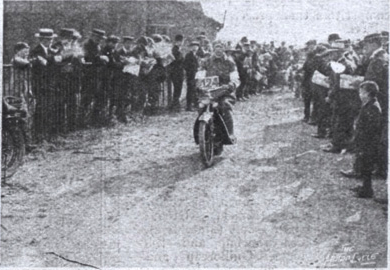 Above is the Bedelia, produced at Bourbeau et Devaux Co. Paris. Competitors were weeded out wholesale and broken springs in Cycle cars, damaged frames, and gear and tyre troubles were commonplace, whilst some competitors had to abandon their motor cycles or cycle cars and return to Carlisle by train. The French team contesting for the International suffered complete decline and the British team were not immune from numerous delays. All the competitors are hardened riders, but as a protest to the officials against what they call “motor obstacle racing, many of the survivors have decided, it is stated, to retire from the trial.For the first 30 miles the route, of which Shipton was the extreme limit, was quite easy wrote correspondent of the “Yorkshire Post” a comment that after passing Penrith it turned into a track that went sharply up into the hills. This surface strewn with stones and rocks very clearly shook the riders off _”buckjump-ing” they called it. Passing through a country upland there was a gradual descent through gullies and a few of the competitors had to stop to mend punctures. At the bottom a small brook flowed over a stony bed. Some riders sped across, the water splashing over them; others more cautious, waded across with their machines, so losing marks. Next the course ran through narrow country lanes leading miles across country, and here one man retired (more anon)