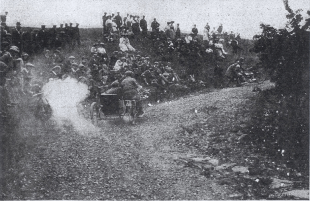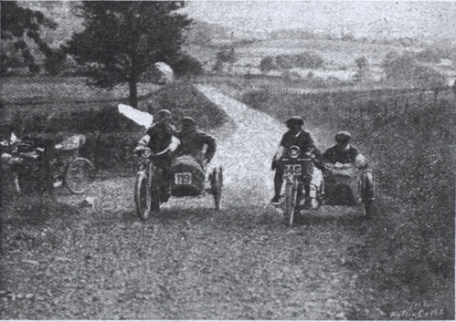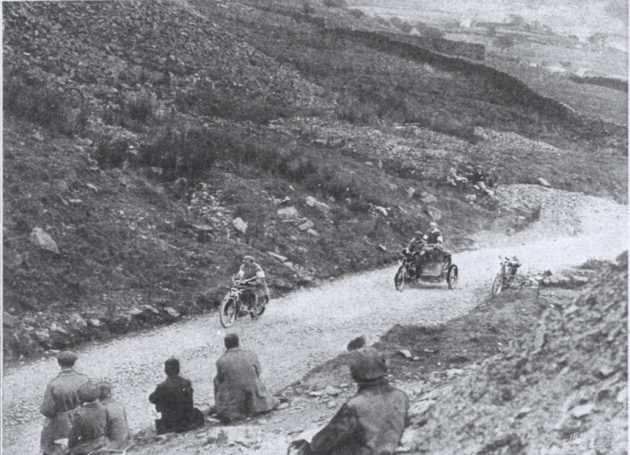 Photo of day 5 at Gummers How with #42 North on Ariel (winner manufactory teams) #122 Stevens on AJS Sidecar Outfit in ISDT 1913