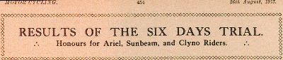 Much of this article relies on information from news articles of the time. If you wish to read the report of the event in Motor Cycle of August 1913 we have now got it available to be read online here: report on ISDT 1913 in Motor Cycle