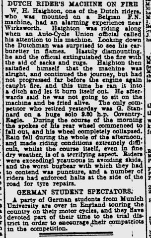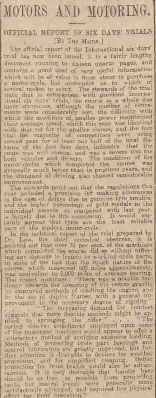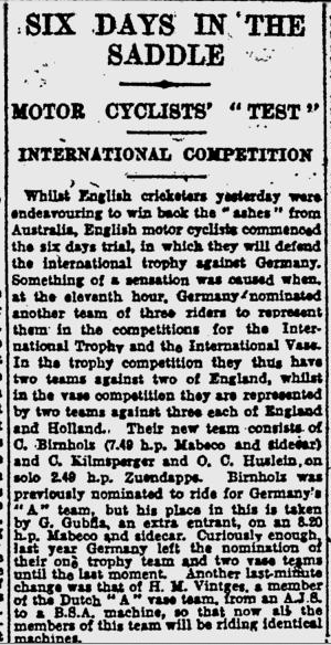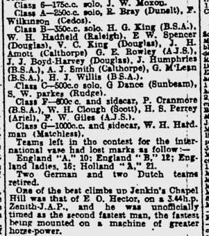 Images of scanned newspaper cutting of event report and results ISDT 1926
