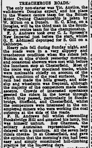 image of scanned newspaper article recounting Bath Competitor ‘BFB’ experiences riding the event at ‘Buxton Bath Chronicle‘ 21 Aug 1926 ISDT 1926