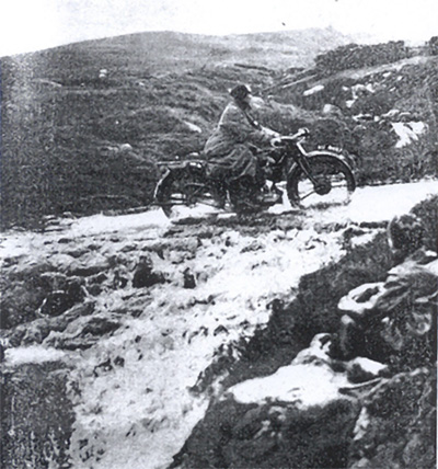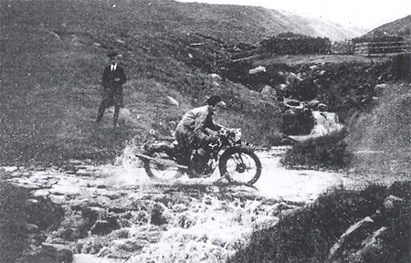 Riders #69 #73 at Water Crossing near Ambleside, Lake District ISDT 1927 (Courtesy of Neal Owen)
