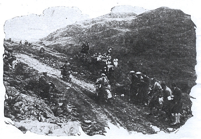 Image of GW Hole (Raleigh) PA Holder (Royal Enfield) JJ Boyd-Harvey (James) and M Valgaard (Rudge Whitworth) resting at Shap ISDT 1927 (image from STT collection)