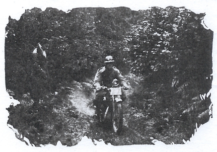 Image of W T Tiffin (Velocette) as his bike sinks out of site in the Asby splash ISDT 1927 (image from STT collection)