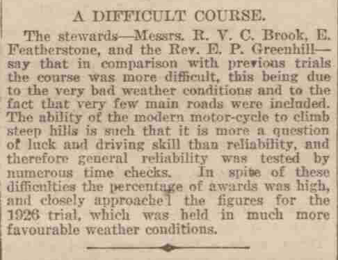 A full report on the preparation, proceeding and results of the event was provided by the Motorcycling Press. Thanks to the generosity of ‘STB’ we are able to provide access to a readable copy of the issue of the 28 August 1927 which carried the event report. This can be read at our library provided by issuu.com.