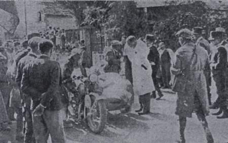 photo – An Italian soldier giving Henne the ‘all clear’ as a danger point in last year’s trial. ISDT 1931 (Image Morton’s Archive)