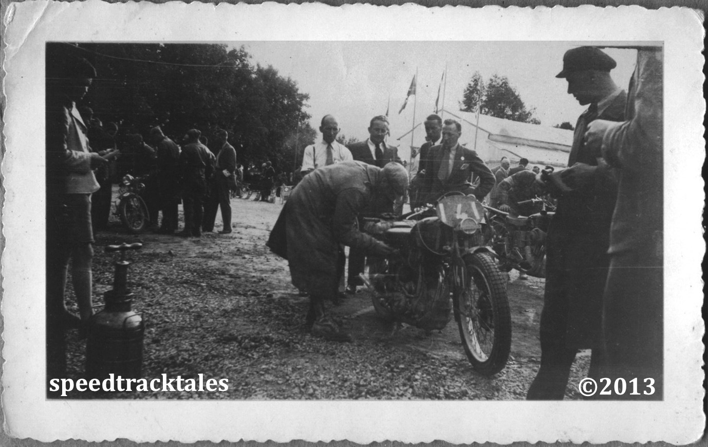 Special thanks to Mrs. Sinnl from Germany – the granddaughter of famous German Rider Arthur Geiss, winner of the Silver Vase in 1935 (left to right: #8 L Krauss (BMW 600cc) #171 E J Henne (500cc BMW) #114 J Stelzer (500cc BMW). Please see her website www.arthur-geiss.de