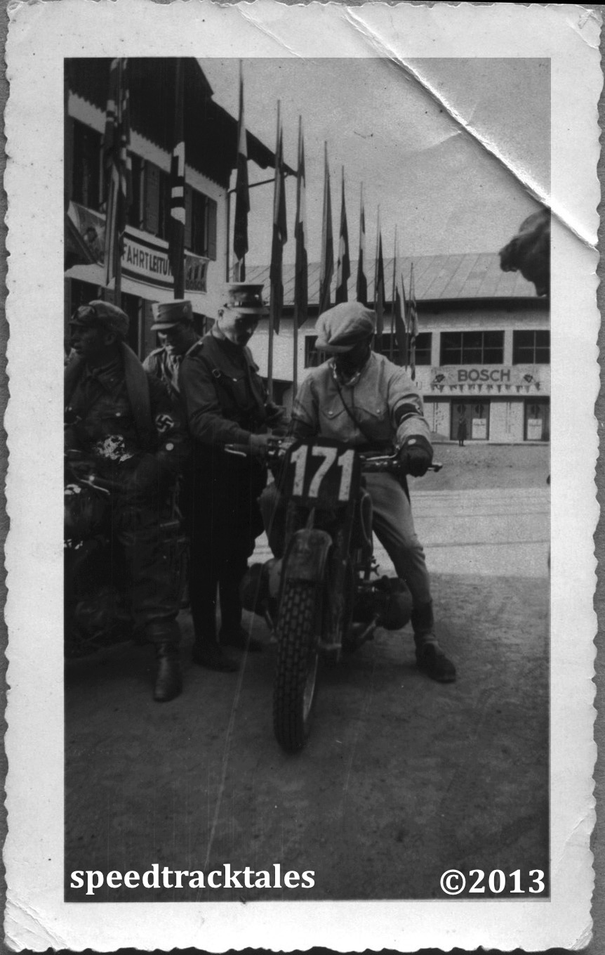 Photo of German rider Arthur Geiss #1 in speed test ISDT 1935 (Courtesy of www.arthur-geiss.de)