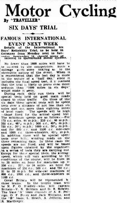 image – scanned article in ‘the Courier Mail‘, Brisbane, Queensland. Australia which provides some insight into the background details for the ISDT 1935