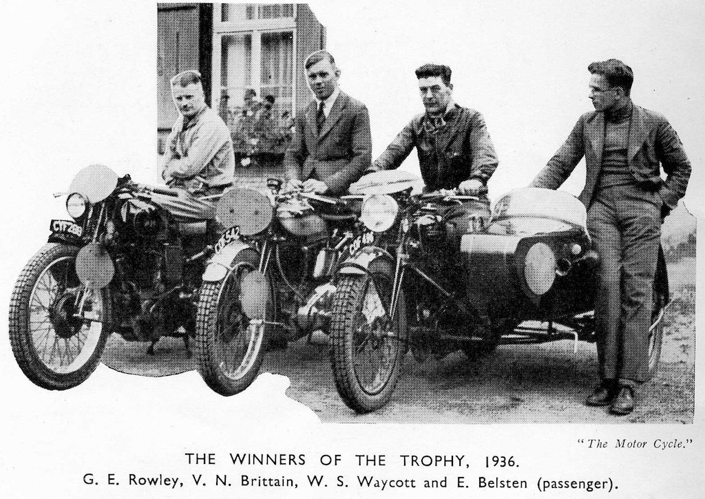 Photo – scanned image of International Trophy winning team from Great Britain of G.E Rowley, V.N Brittain, W.S Waycott and E Belsten from ‘the Motor Cycle’ via the 1937 programme. (courtesy of the Wryan Collection) ISDT 1936