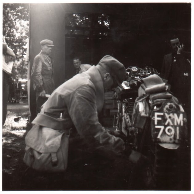 George Rowley is fettling with his bike [FXM 791] ISDT 1939 (courtesy of the Stephen Dolling Collection)