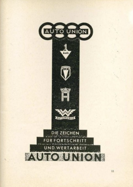 Image of scanned advert from Official ISDT Programme 1939 featuring German manufacturer Auto Union (Now the Volkswagen Audi Group) manufacturers of the DKW motorcycle