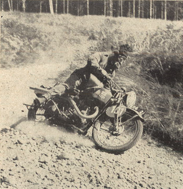 The course runs through the Bavarian Alps and will pass through Berchtesgaden, where Hitler’s mountain retreat is situated. Britain has held the international trophy during the past three years, but following the advancement made in the manufacture of foreign machines, together with their performances in recent international road race meetings, sterner opposition is expected this year. A number of European military teams, including three from Britain, were to meet for the first time in an international contest, and great interest has been evinced throughout Europe. Fifteen army motor cyclists were selected to undergo a course of training in readiness for the six days’ event and went into a special camp on June 5. Although foreign teams have been similarly trained for several years, this is the first occasion that such training has been undertaken in England. At the end of five weeks’ training, 12 riders were selected to continue the training and the three British army teams were selected from these riders. Physical training has been closely studied, and during the final weeks runs of 200 and more miles, with petrol stops, time checks on “international” lines, trouble tests in between checks, and everything in line with the actual six days conditions, have been held. England’s best scramble and trials riders have assisted and representatives of tyre companies have given instructions in tyre changing. The riders were stopped during their training runs and informed that they had a broken fork-spring, chain, puncture or other trouble, and they were then observed as they carried out repairs. During the final preparation days, the riders visited their respective factories for all information and instructions con- cerning their machines. The trial was arranged to finish on Saturday, when a cross-country test of rough riding was to take the place of the usual speed tests. German officials organised and controlled the competition and elaborate welcomes and entertainments were provided for the visiting motor cyclists.”
