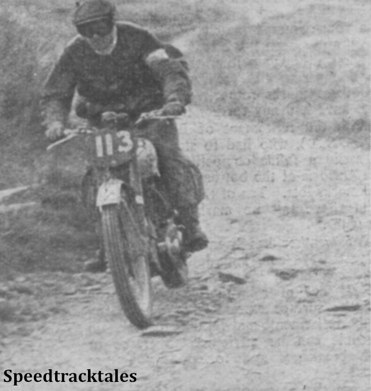 Photo – Great Britain Trophy Team rider #113 Fred Rist (BSA) gets a move on at Tregaron ISDT 1949 (Speedtracktales Collection)