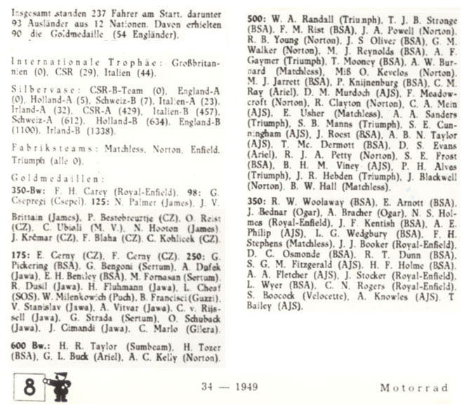 I am looking for some information if you have time. You have a photo of Frank Carey who won a gold medal in 1949. I cant find any other reference to this rider. Did he win ISDT in Wales? Do you have any other information about him?