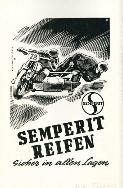 Photo – German sidecar expert #105 M. Klankermeier (BMW) takes a corner in Admont. ISDT 1952 (Speedtracktales Collection)