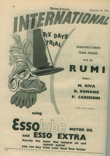Scanned Trade advert – Mobil Oil promoting success at the ISDT 1954