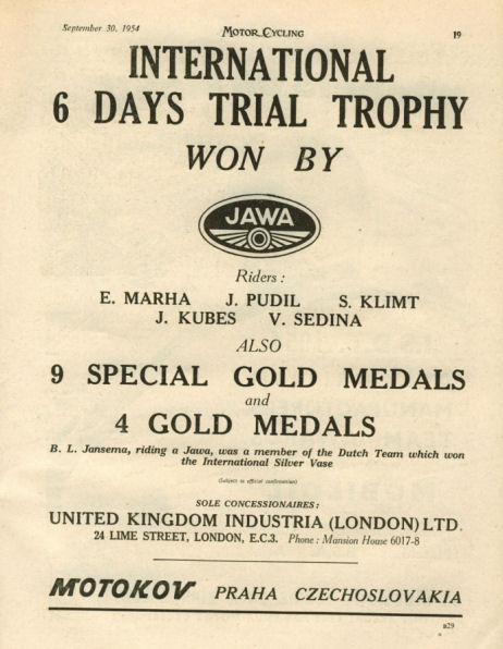 Image – scanned advert for ‘Motor Cycling‘ issues with coverage of the ISDT 1954