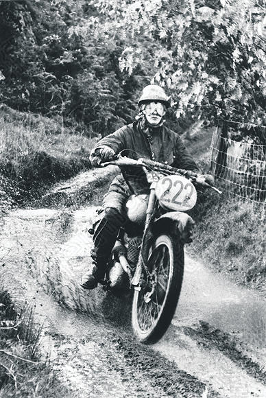 Photo of young Swansea rider #182 Peter Atkinson on a self entered Second hand purchased Greeves, took a Gold Medal in ISDT 1961