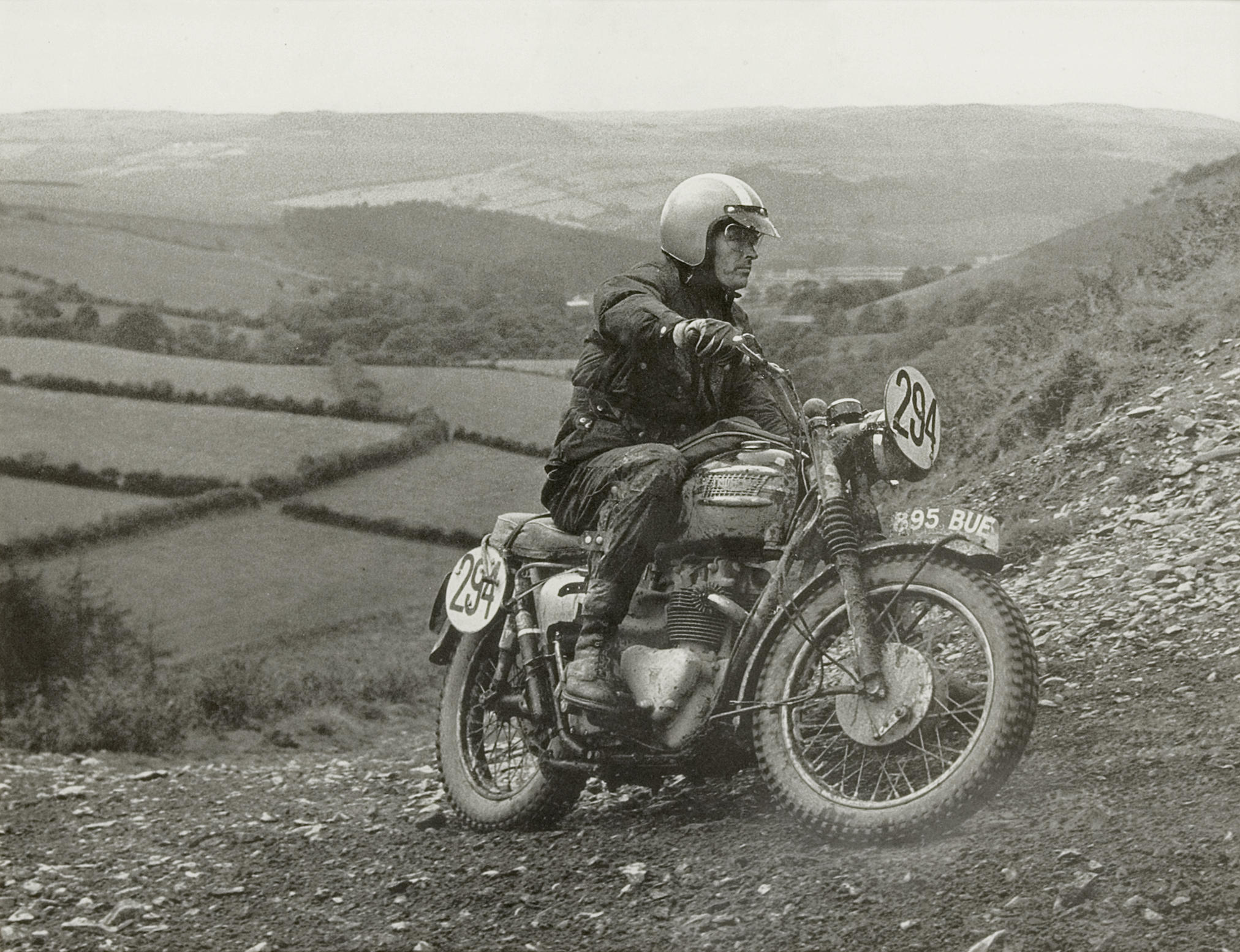 Photo – The formidable #287 Gordon Blakeway of the British Vase team on his 490cc Tiger 100SS Triumph. ISDT 1961 (speedtracktales collection)