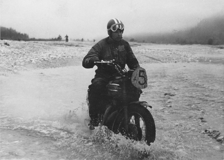 Photo of #5 Bud Ekins (587cc Triumph) who picked up a gold ISDT 1962 (courtesy of Bud and Dave Ekins Collection)
