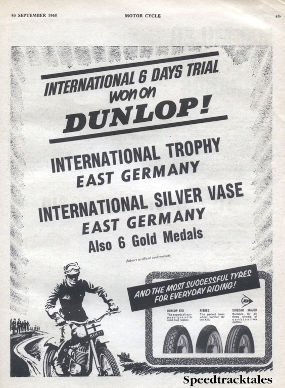 Image of scanned advert for ISDT 1965 success by Dunlop