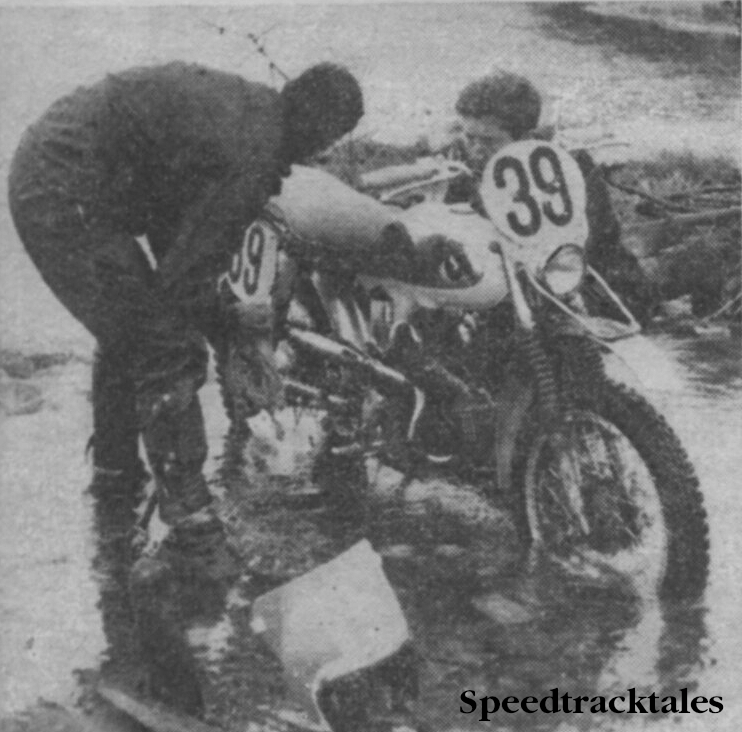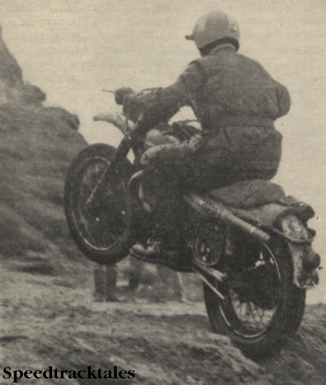 Bill Faulkner, a well known one day Trials man brought the only BSA to the finish , albeit for a Bronze after those 343 & 441 Victor style Works machines all packed up, to Britain’s & BSA shame. Bill was quoted as stating that an ordinary bloke had no idea how tough it was.  Bill nursed his private unit B40 BSA home to the finish though. He used ignition system from a scrapped Tina Scooter, a Gold Star front wheel, a Gold star QD Rear wheel, a standard C15 camshaft & raised his Trials gear ratio & ran it on Castrol R30, cycle bits 3 years old Bill upped carb main jet from 240 to 280, advanced his ignition slightly, perhaps the factory could have noted.   I was riding a 500 Tribsa in Hawkestone Grandstand Scramble when Jeff Smith flew past me on the old long straight heading for the big hill, I think it was a 340 or similar & media people’s columns spoke of Magnesium bits etc & yet a big ex arms producing company could not get a machine to last through the ISDT.