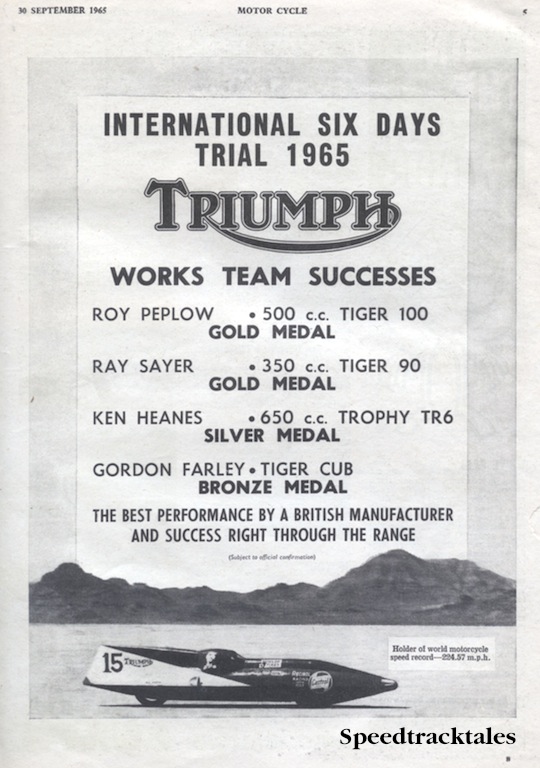 Image of scanned advert for ISDT 1965 success by Triumph