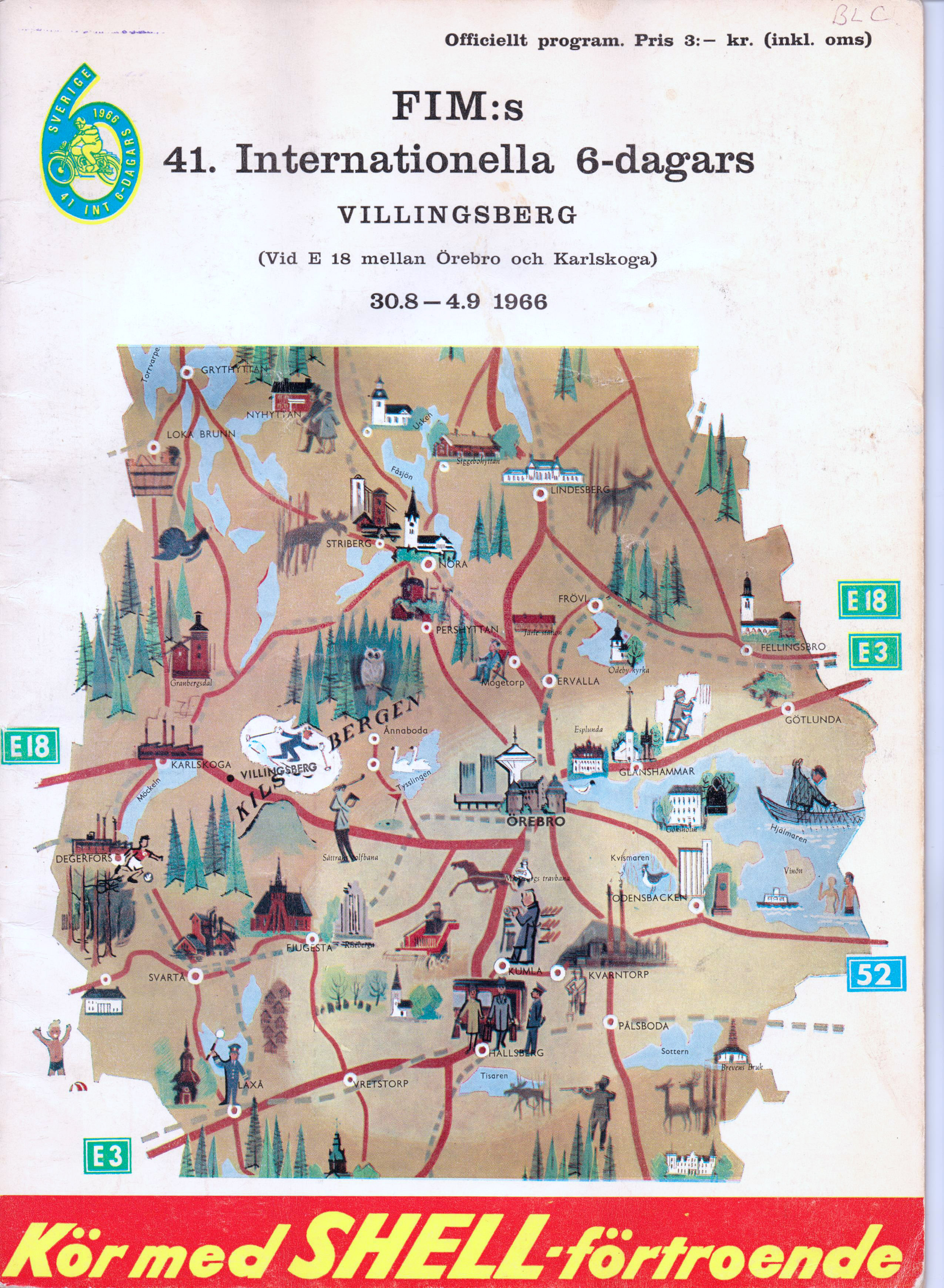 Brit Trophy Team had 5 on Triumphs & one on BSA. Veteran Frank Carey could not start his 125 Suzuki in the permitted hour & became a non Starter. 11 Special Tests awaited competitors 149 of 287 starters obtained Gold Medals, of 58 others, 34 took Silver, the rest Bronze.. Karlskaga to Orebro Artillery Training Ground was being largely used & 2nd day had 90 miles south of Villingsberg to cover. 22 retired on Day ONE!. East Germany took the Trophy & West Germany the Silver Vase.