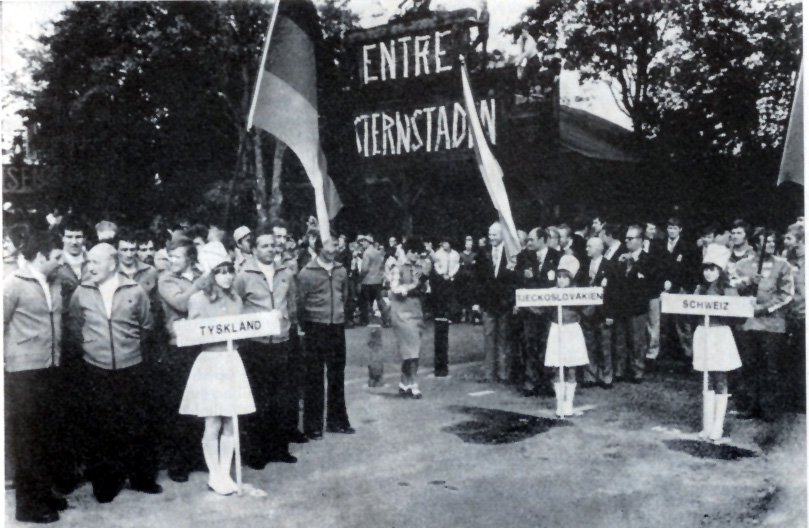 Photo – West German, Czech and Swiss teams at the opening parade ISDT 1978