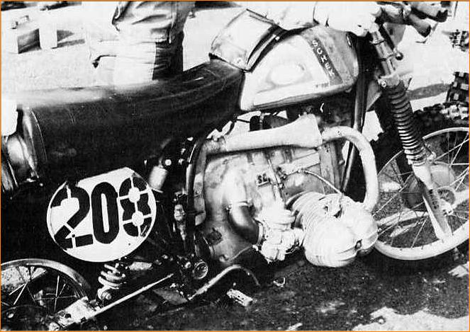 Photo – #261 Zloch with his Jawa featuring the new Sachs Hydrocross shocks and riding for the Czech Trophy team ISDT 1978