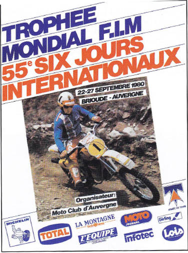 Image of poster of the 55th ISDT 1980 held in Briode in the Auvergne region of France (Image courtesy Squadra Regaloritá Club France)