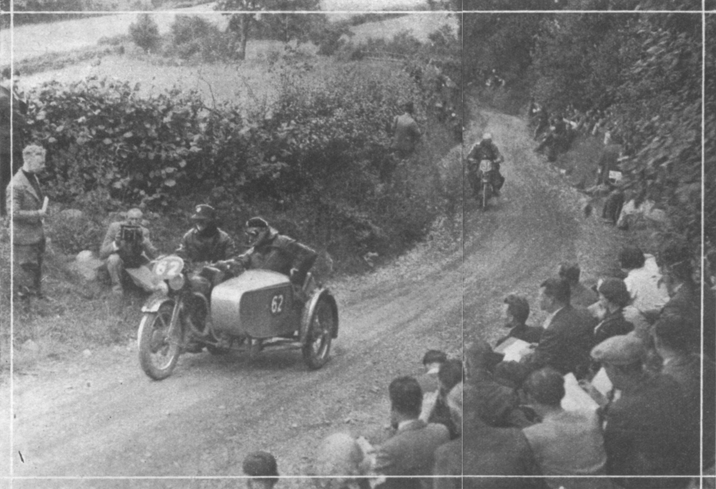Image – Although there are no observed hills in the International, there are plenty of steep hills on the course. Here is H.W. Croucher (598 Panther sc) leading W. v. Millenkovich (248 Püch), Austria, up the 1 in 3 1/2 gradient of Allt-y-Bady.