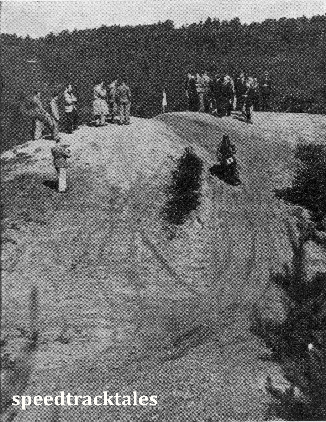 image – R MacGregor (Rudge) drops down the hill after Killimanjaro in the cross-country tests 1939 (speedtracktales collection)